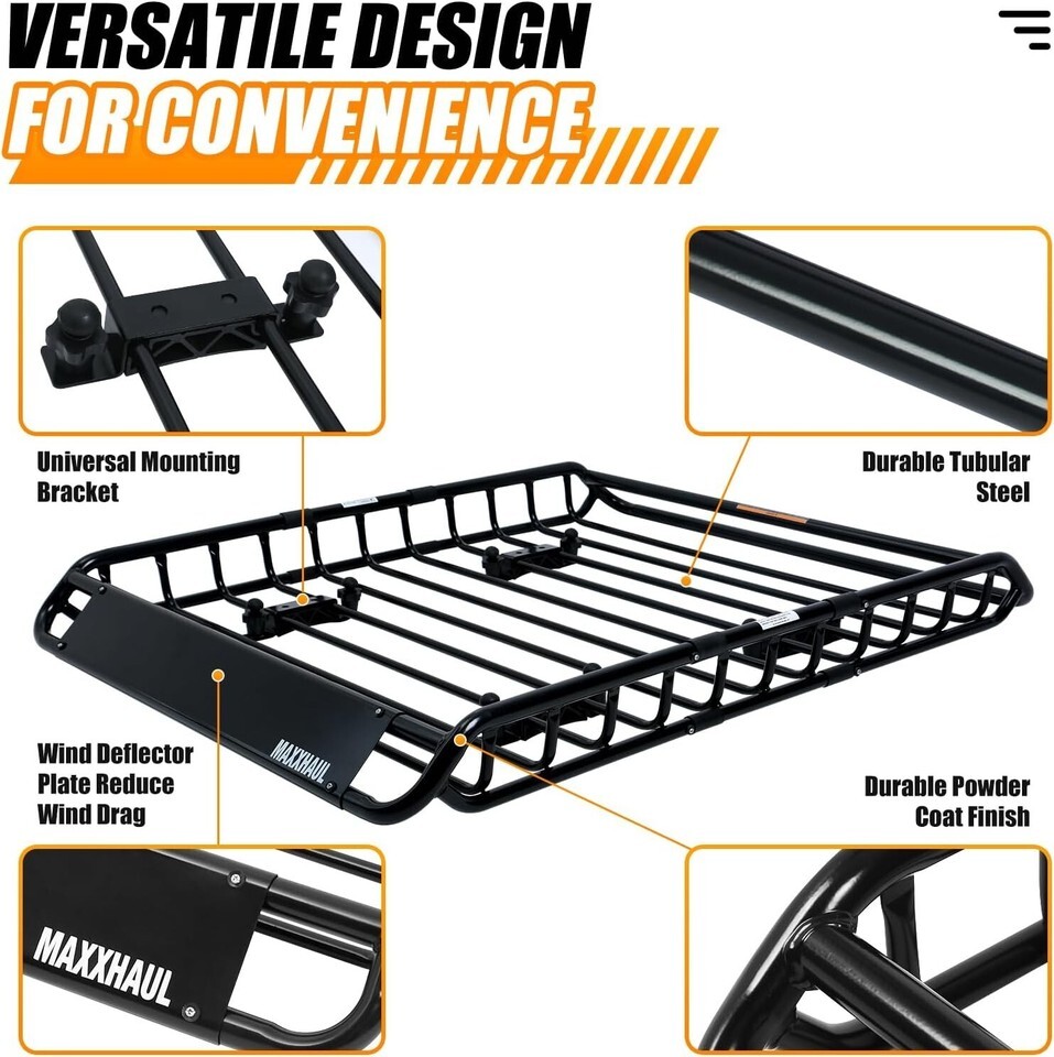 Crafted from durable steel with a sleek powder coat finish, this rooftop carrier not only promises longevity but also protects your cargo from the elements with an included rubber gasket. Experience the convenience and durability of our rigorously designed roof rack - the perfect complement to your adventures. Don?t wait; enhance your vehicle?s utility today!
