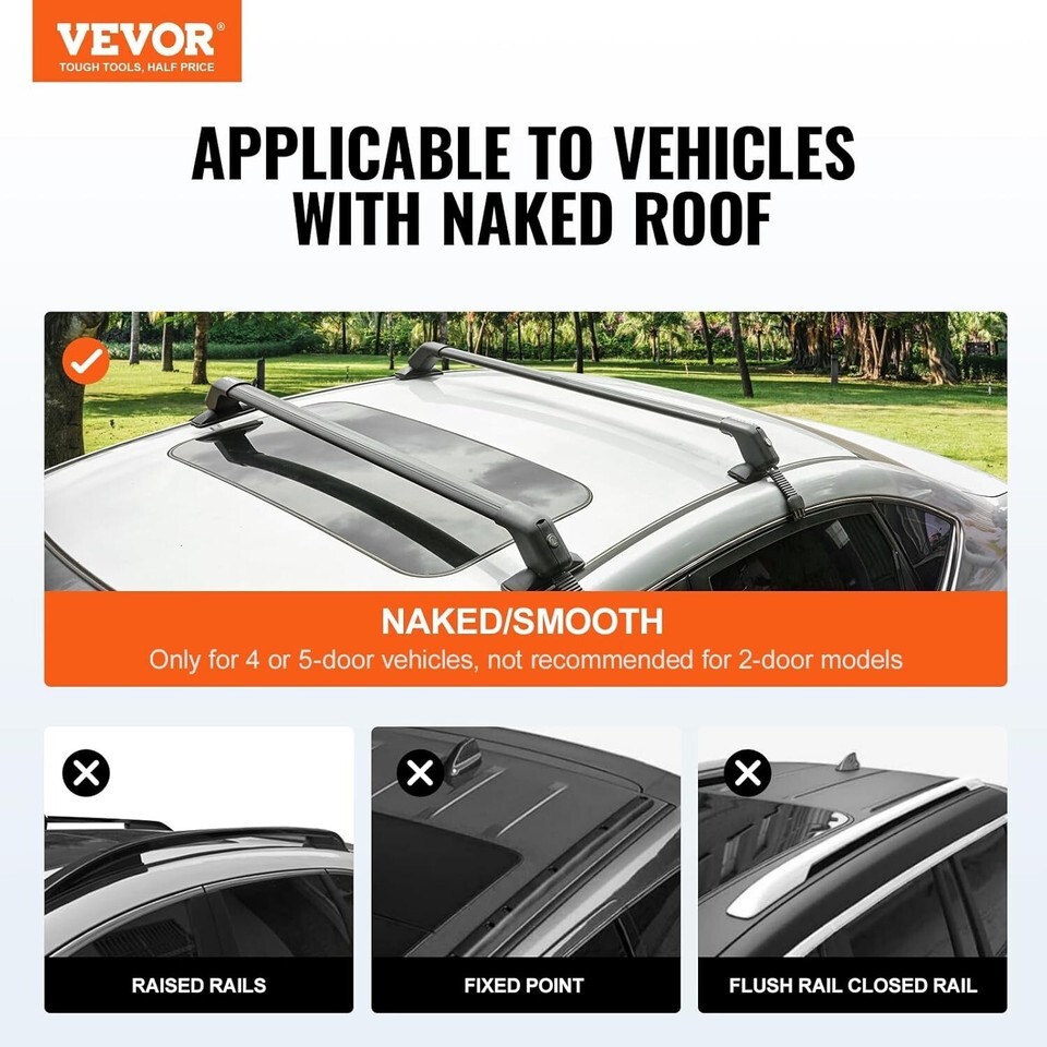 Are you ready to elevate your travel experience with our Easy Snap Roof Rack Cross Bars? Designed for versatility and convenience, our universal cross bars fit seamlessly on your vehicle's naked roof, allowing you to carry gear with ease and style. With a robust 155 lbs load capacity, you can transport everything from luggage to bikes without worry. Crafted from aluminum, they offer durability without the weight while the innovative aerodynamic design keeps your journeys peaceful and efficient.
