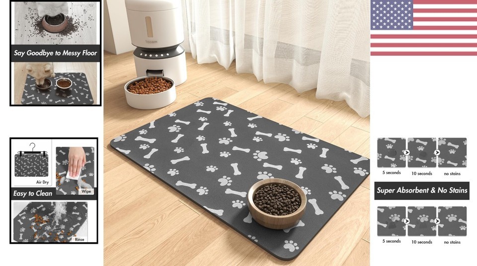Don't settle for messy feeding areas and wet floors - our Versatile Dark Grey Pet Feeding Mat is the perfect solution for pet owners. With its super absorbent and quick-dry abilities, non-slip rubber backing, and easy clean and storage features, this mat is a must-have for any pet owner. Plus, its durable and pet-friendly design ensures your beloved pets are safe and comfortable while eating and drinking.
