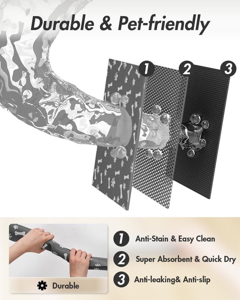 Super absorbent and quick-dry ability to avoid wetting pet paws