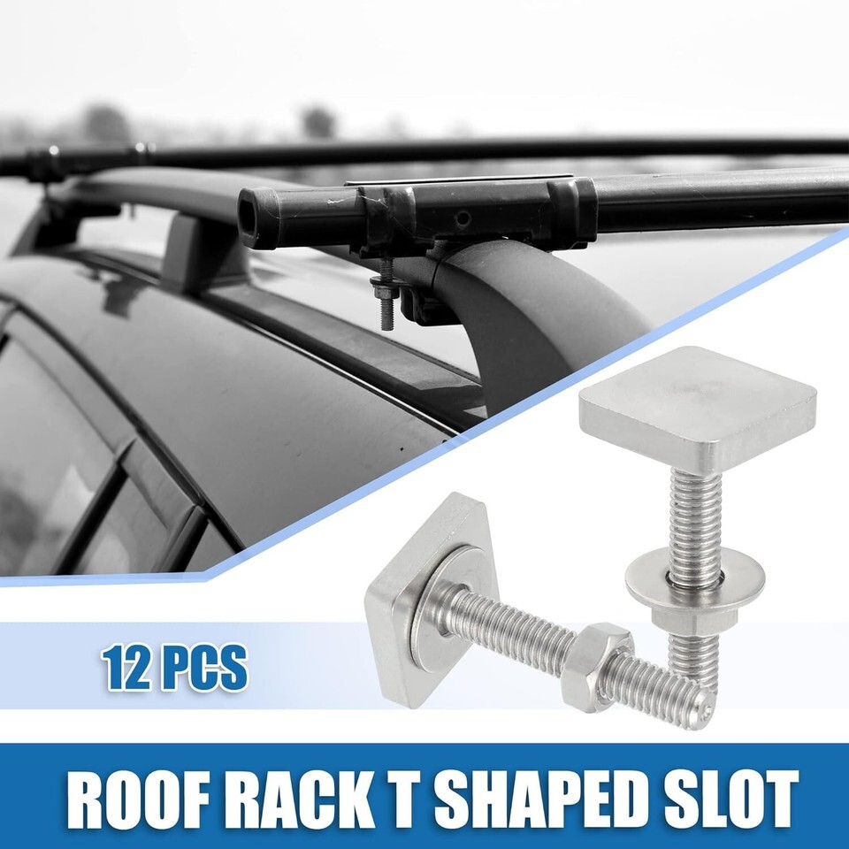 Car Roof Rack T Shaped Slot Bolt M6 W/Nuts Washer T Shaped Track Bolts Roof Rack Cargo Carrier Bolt Accessories Stainless Steel Pack of 12