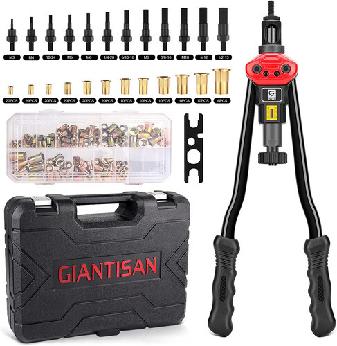 Rivet Nut Tool - 16? Rivnut Tool Kit with 13 Metric SAE Mandrels, 150 PCS Rivnuts, Rugged Carrying Case