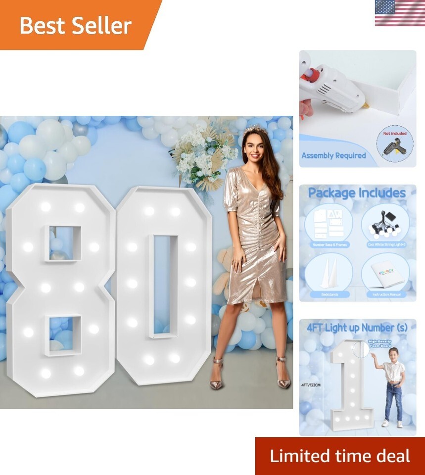 Marquee Numbers Large 80th-Birthday Decorations: 4ft Light Up Number Party De...