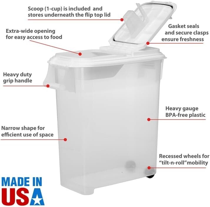 Proudly Made in the USA: Rest assured that you're investing in a high-quality product that's made in the USA and designed to meet the highest standards of pet food storage for your beloved companion.