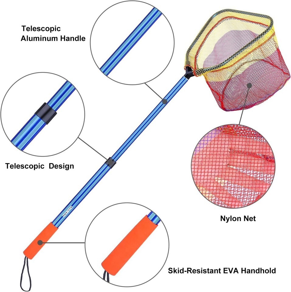 --Aluminum made handle and net ring makes the fishing net lightweight and ensures the kids carry it with ease.