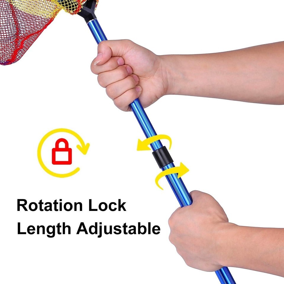 Premium Material: Durable nylon and strong quadrilateral structure mesh, skid-resistant EVA handhold with Retractable aluminum handle makes the fishing net solid, durable and lightweight.