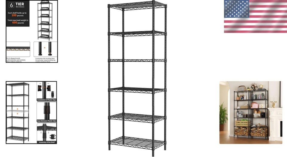 Versatile 6-Tier Wire Shelving Unit - Perfect for Garage, Kitchen, and Office
