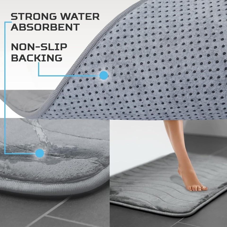 Luxury Bathroom Rugs Set 5 Piece - Memory Foam Bath Mat Set, Toilet Rug Set. Strong Absorbent, Non-Slip, Ultra Soft, Easy to Clean, Gray