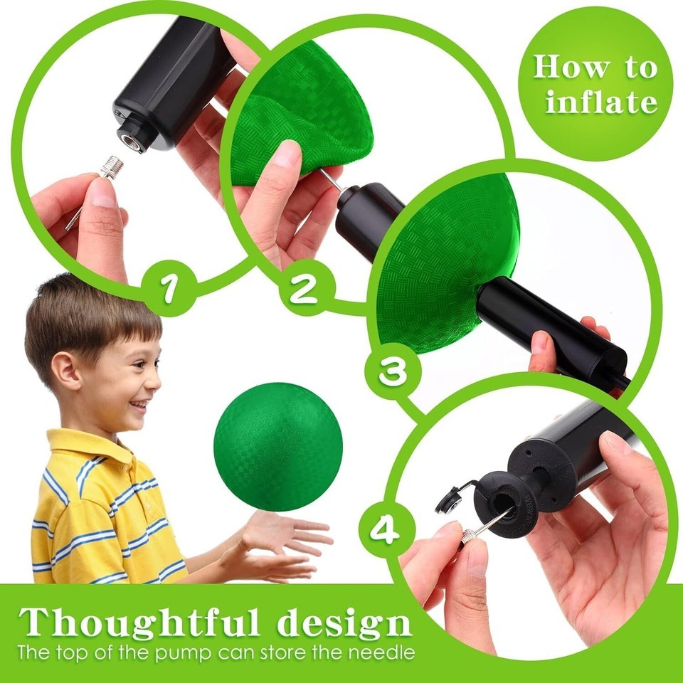 What You'll Receive: there are 24 pieces of playground balls and 1 piece of air pump in the package; The kickball set is sufficient for you and your children, or your kids to play together and have a happy time; Note: the needle is placed on the top of the pump, please turn on the top switch and take out