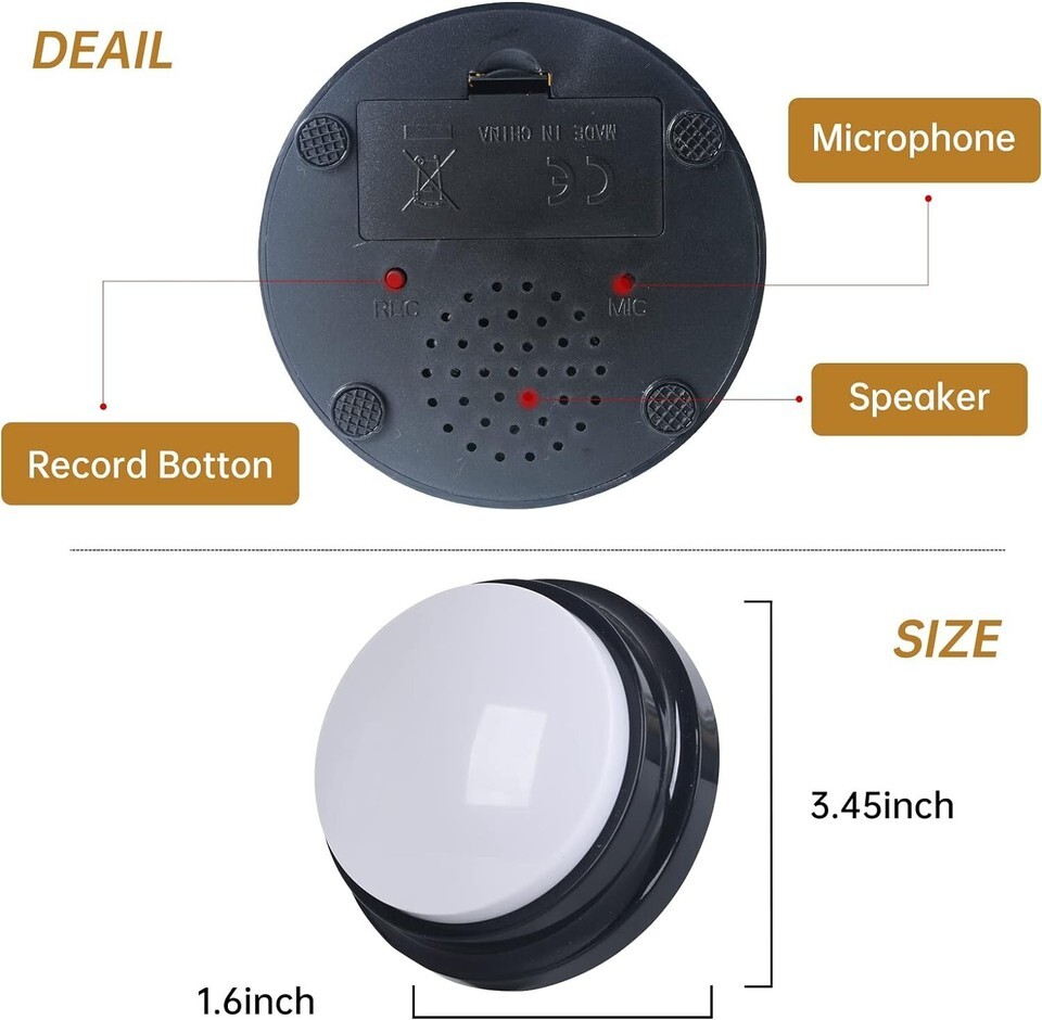 ?Clear Recording? The record button can record up to 30 seconds with clear and loud sound. You can repeat the sound you recorded or re-record it. Small size, easy to carry. Very practical and fun!