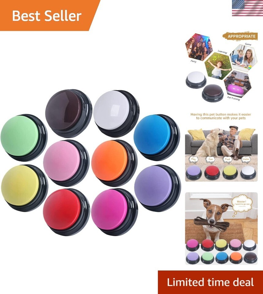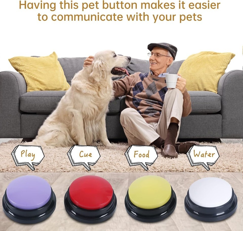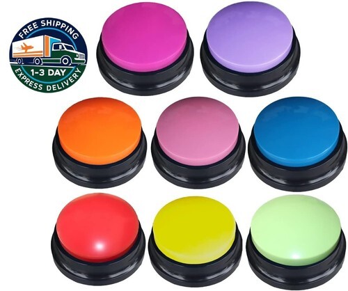 ?Pet Training Buzzer? You can record action-related words such as "eat", "drink", "outside", "yes", "no" and other commands to develop your pet's habit of communicating with you; with a little patience, you can get to know your pet's mind. Great for training dogs, cats and other pets. Different color buttons can be used as options for different training.