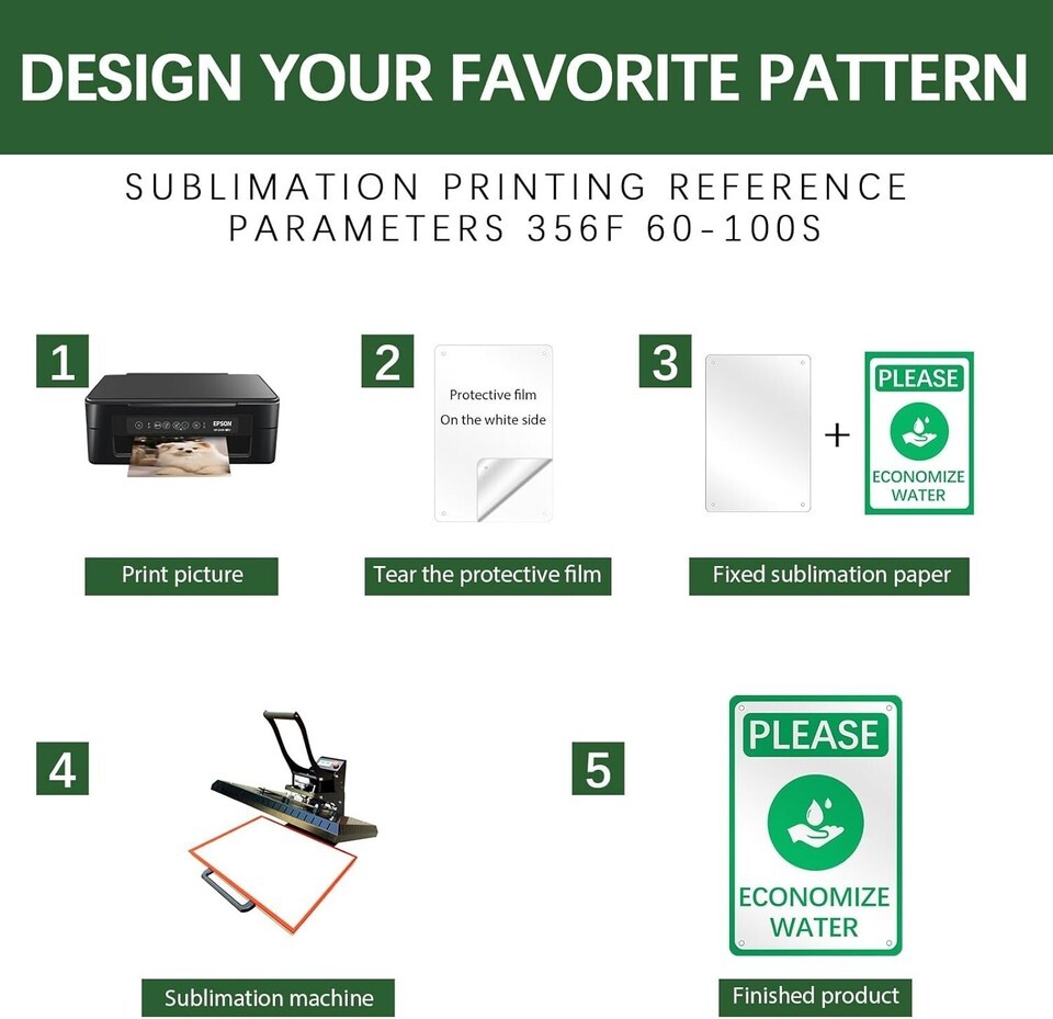 ?Production and use? Transfer the pattern for 50-60 seconds at 190-200?(374-392?). Note: The metal photo surface has a protective film, please remove before use