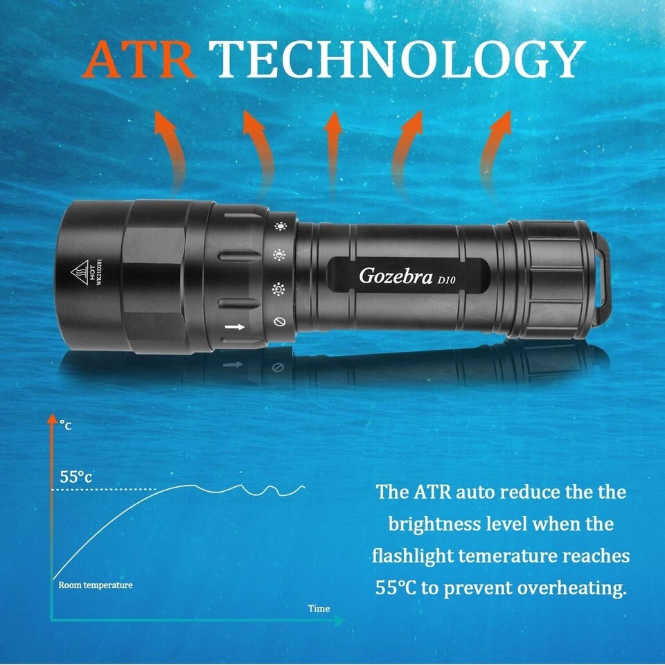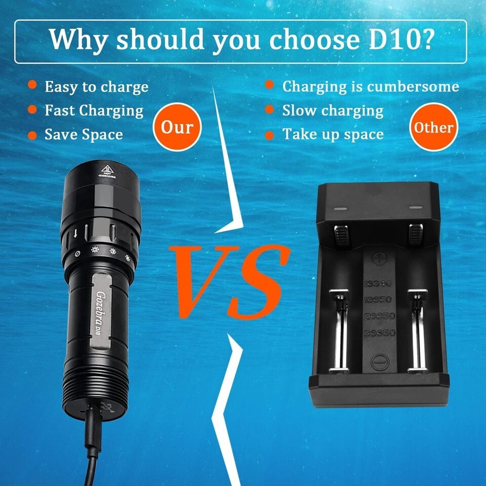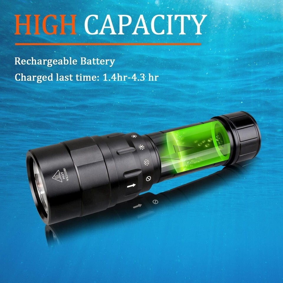 D10 4500 Lumen Underwater Light, 3 Modes Dive Light Scuba Diving Flashlight D...