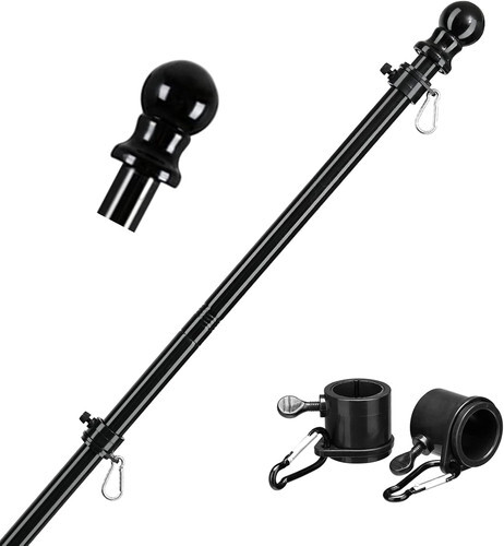 HIBLE 5 Foot Carbon Fiber Flag Poles for House, 1 Inch Strong Black Flag Pole...