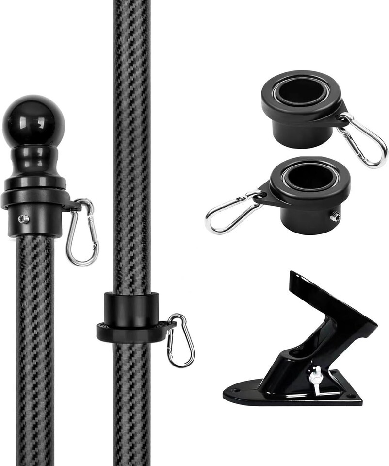 HIBLE 5 Foot Carbon Fiber Flag Poles for House, 1 Inch Strong Black Flag Pole with Bracket and Built-in Bearings Tangle Free Rings 4 Sections, For House, Not For Truck