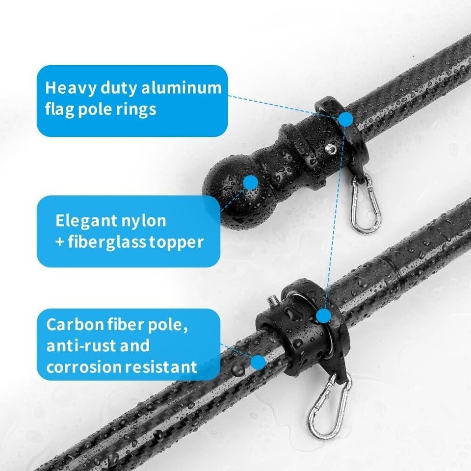 ?Premium Material - Carbon is one of the most stable elements in the world. Carbon fiber is always called "the king of material," it has high strength and lightweight characteristics. HIBLE carbon fiber flag pole is made of natural T300 carbon fiber. It's lighter but more sturdy than normal stainless steel and aluminum flag poles.