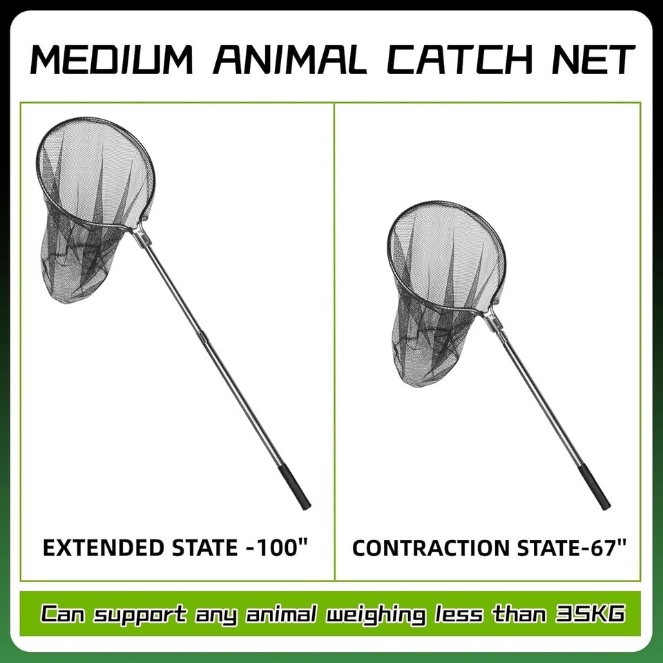 This is a large capture tool net with a diameter of 20 inches and a maximum stretch of 100 inches. Suitable for outdoor use. Very suitable for cats, poultry, small dogs, fish, etc.