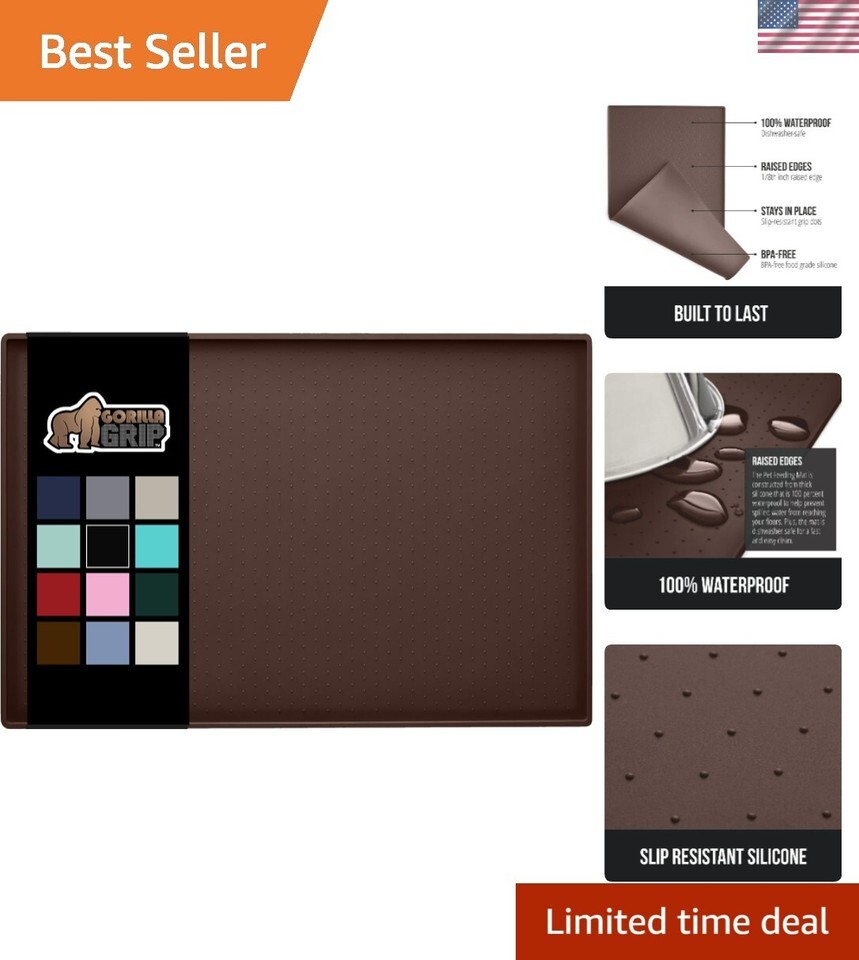 100% Waterproof Raised Edge BPA Free Silicone Pet Feeding Mat, Dog Cat Food Mats Contain Spills Protects Floors, Placemats for Cats and Dogs Water Bowl, Pets Accessories 32x24 Brown