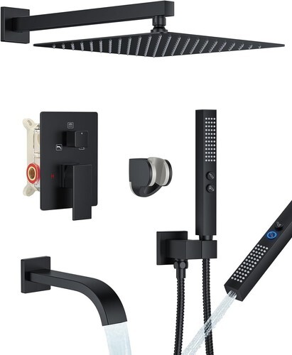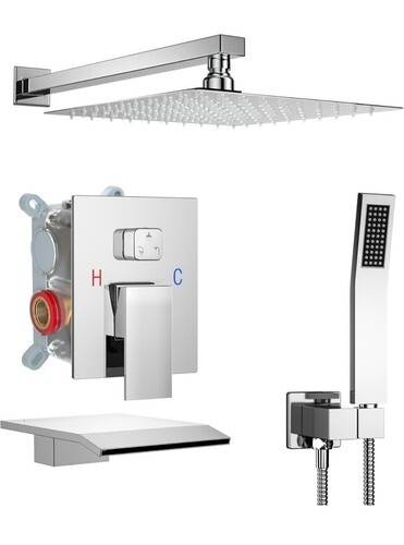 ?Shower Head Combo?: 10" square stainless steel shower head and square ABS hand shower, the super large panel gives you the perfect experience of showering under the waterfall. The ball joint that provides 360rotation is made of brass. Compared with plastic ball joint on the market, ours are stronger and will not break or leak. The hand shower offers a regular shower pattern and a powerful jet, enough to clean the walls of a bathtub or shower.