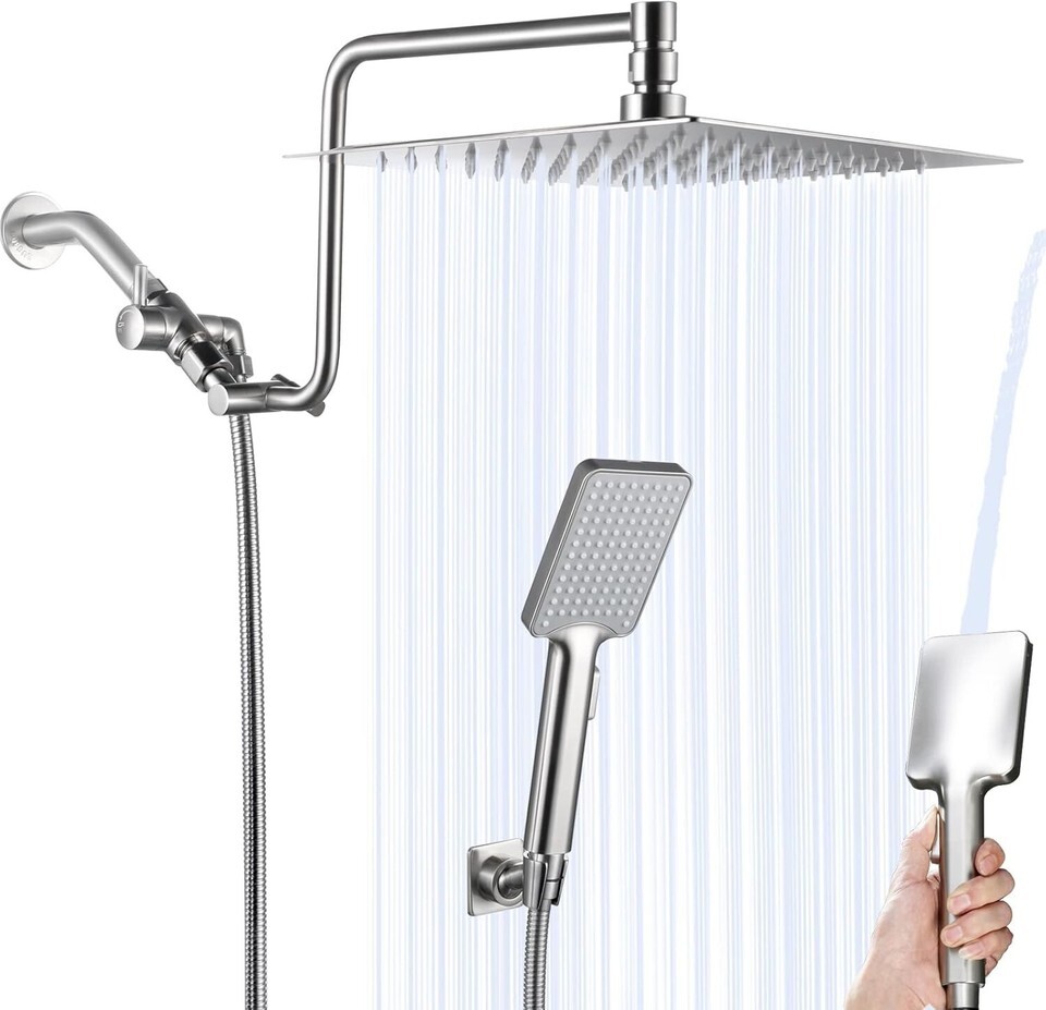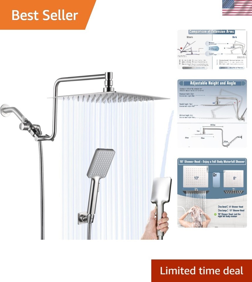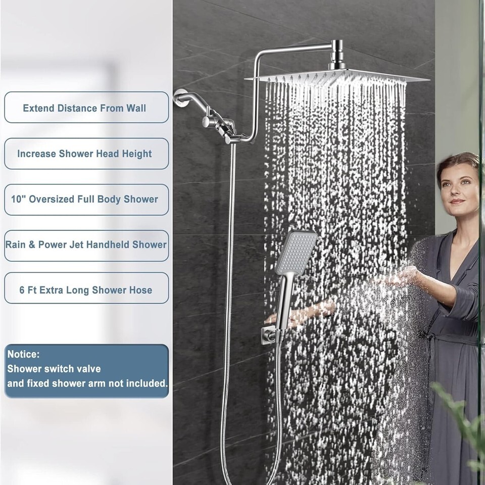 10" Rainfall Shower Head with Handheld Combo High Pressure, Upgrade 12" Exten...
