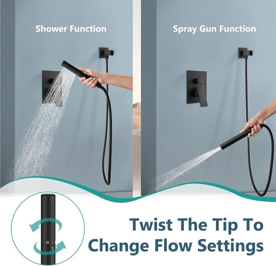 Multifunctional Handheld Sprayer: shower head and handle set with the 2 in 1 sprayer.Different from most of others' which included in the shower set, just twist the body,to switch from shower mode to high-pressure handheld top spray water mode,available for extensive use like pets shower, toilet or bathroom cleaning