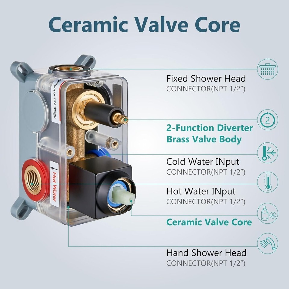 Material: shower fixtures with solid brass rough-in valve and heavy other parts are also metal making it rain shower head with silicone nozzles allows you to wipe away mineral deposits with the swipe of a finger