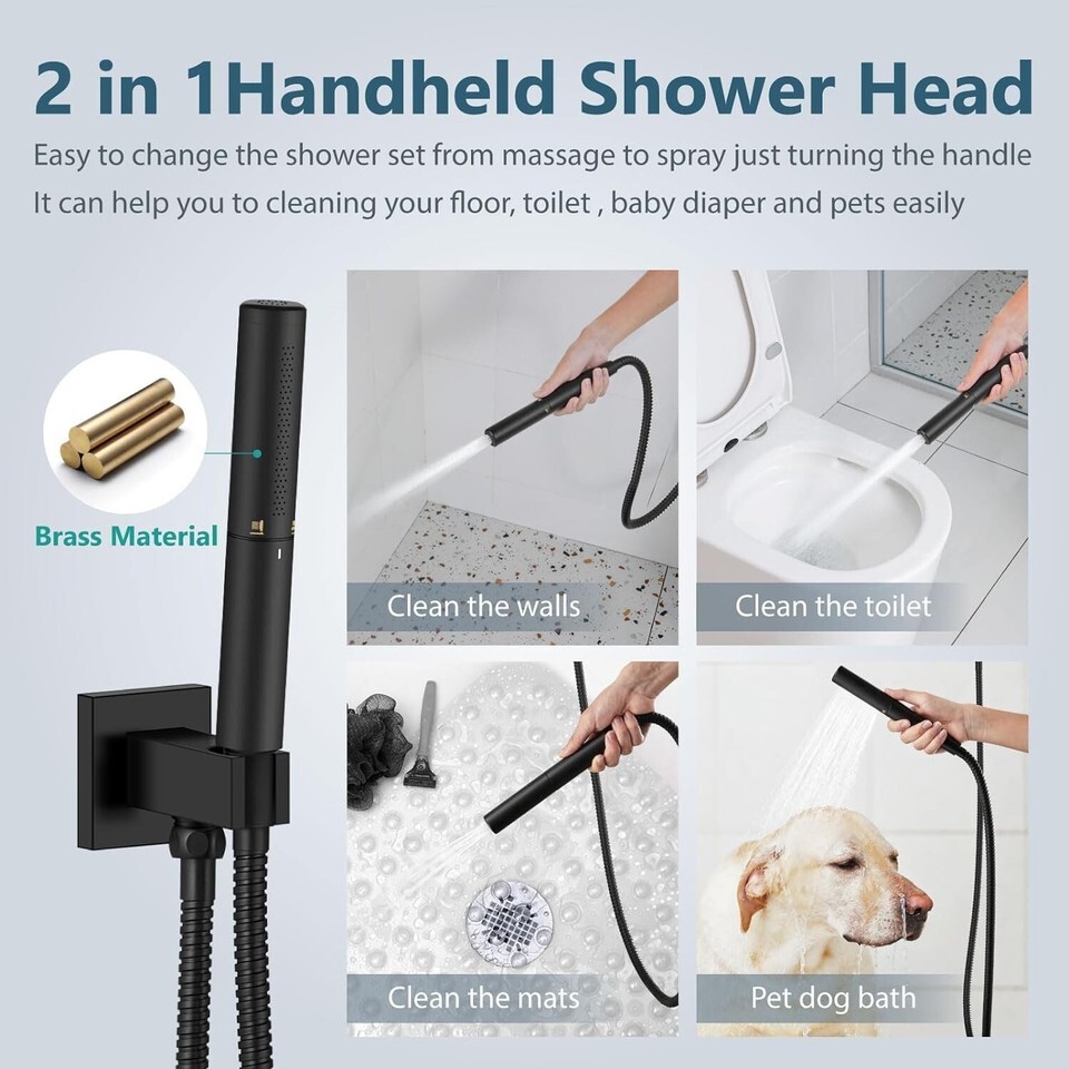 What?s Included:This bathroom shower faucet set includes shower head,handheld shower,shower arm wand,shower hose,shower holder and brass rough-in with clear instruction