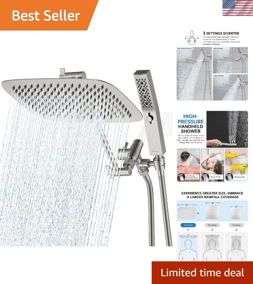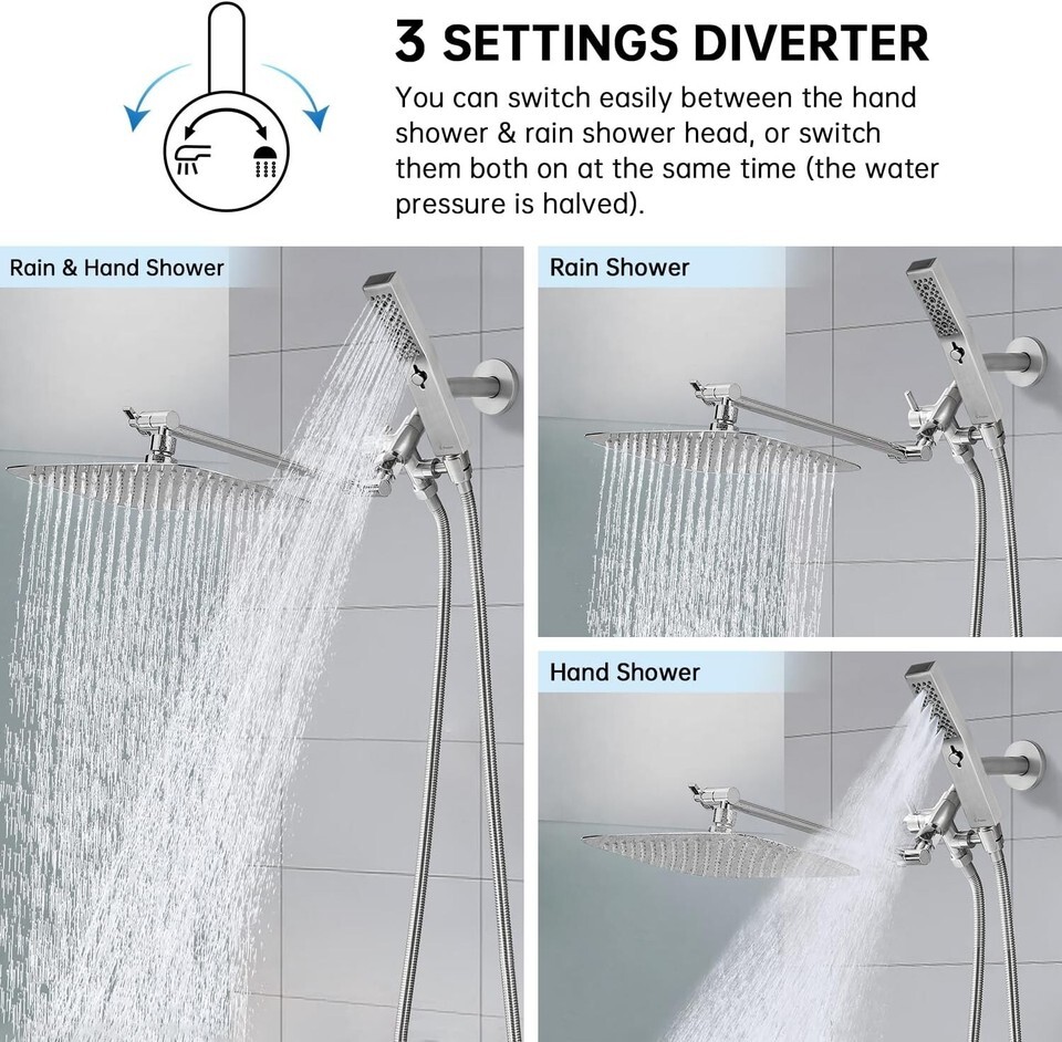 All Metal 12" Dual Shower Head Combo | Rain Shower Head | Handheld Shower Wan...