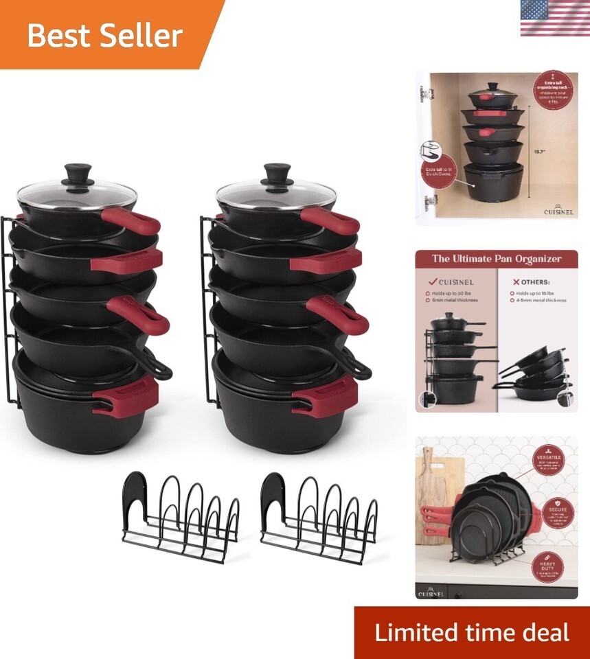 Pots and Pans Organizer - 15" Heavy Duty Skillet Rack - 2 Pack - Kitchen Counter/Cabinet Organization Storage - Holder for Cookie Sheet, Cutting Board, Cast Iron Cookware, Dish, Lid Stand