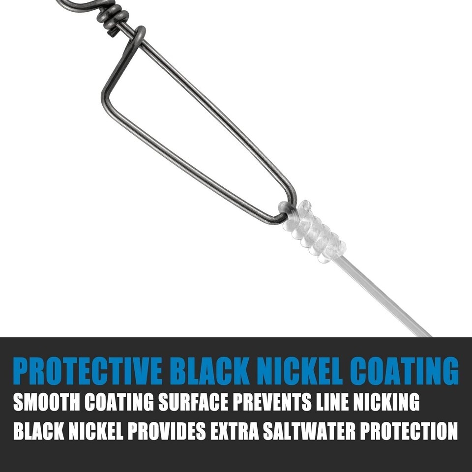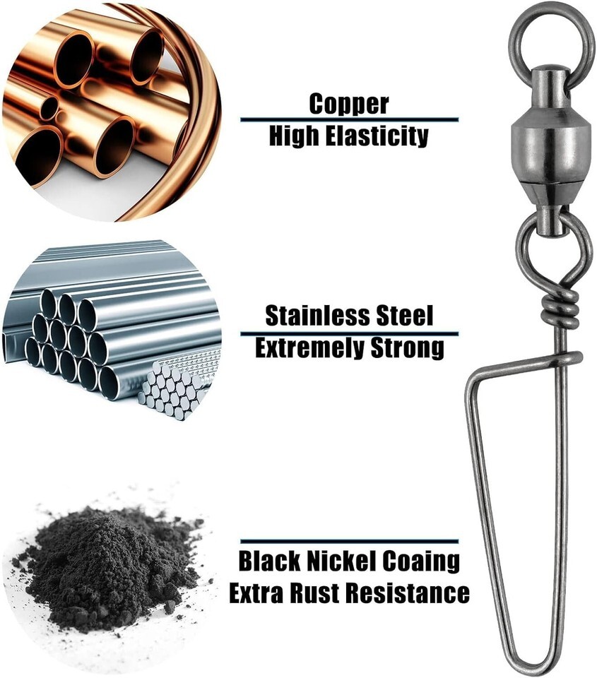 PREMIUM MATERIAL: Ball bearing swivel made with high quality copper, snap and ring made with enhanced stainless steel. Full body coated with black nickel coating for incredible strength and durability.