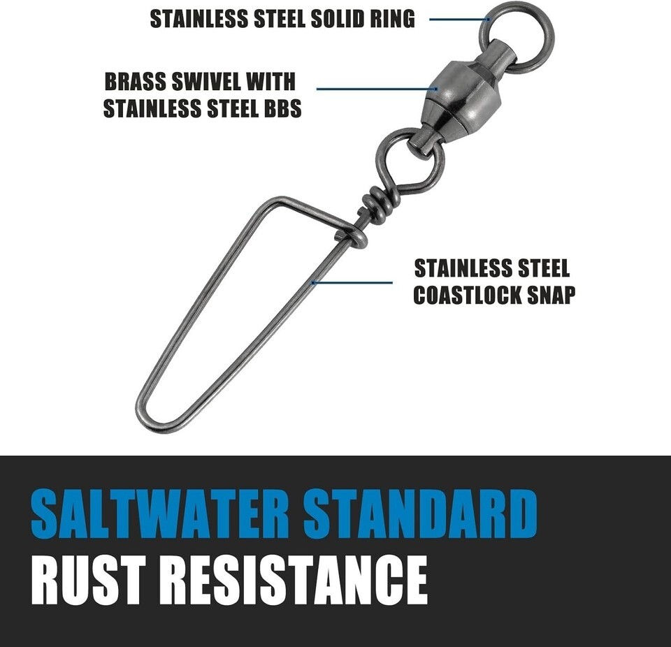 Fishing Snap Swivels, Ball Bearing Swivels with Stainless Steel Coastlock Snap, Corrosion Resistant Black Nickel Coating, High Strength 26Lb to 503Lb, Saltwater Swivels Fishing Tackle