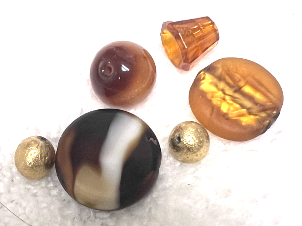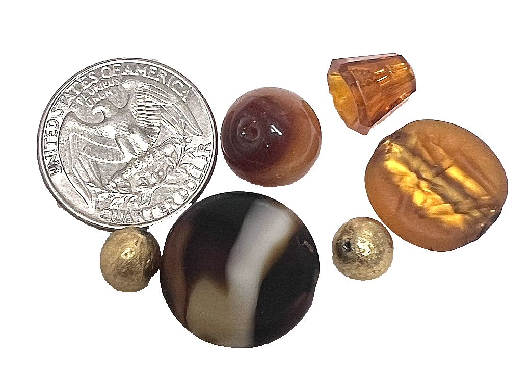6pc Vintage Shades of Amber Brown Gold Foil Beads 1/4-3/4 inches