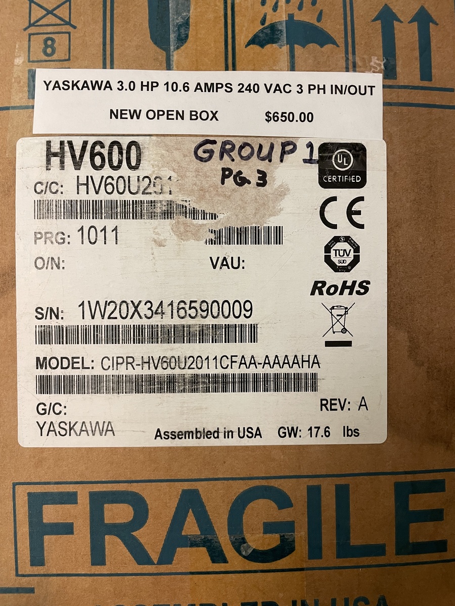 YASKAWA HV60U2011CFA (HV600) 3? IN/OUT 3.0 HP 10.6 A 240 VAC NEW OPEN BOX