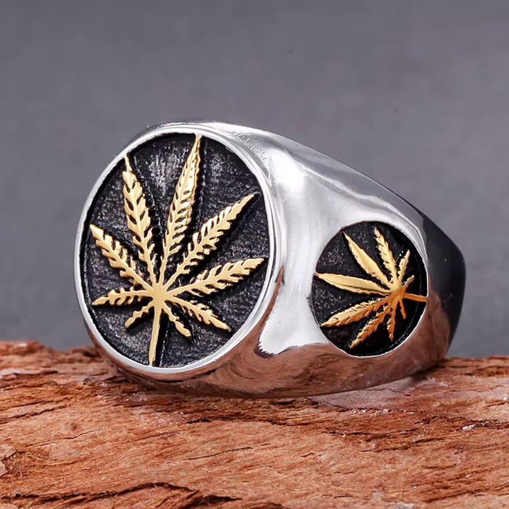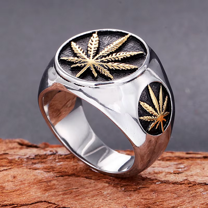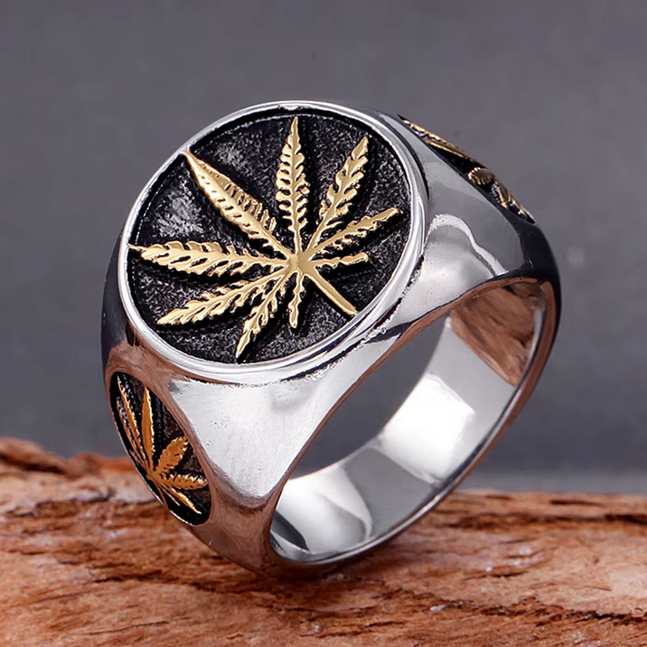 Men's SOLID 316L Stainless Steel Maple Leaf Polished Signet Ring (Size 8-14)