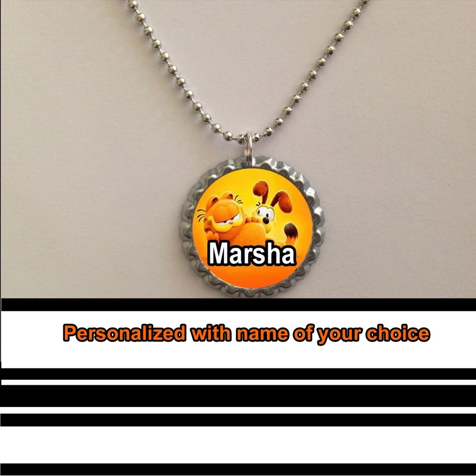 Garfield And Odie peeping custom personalized necklace with name of your choice