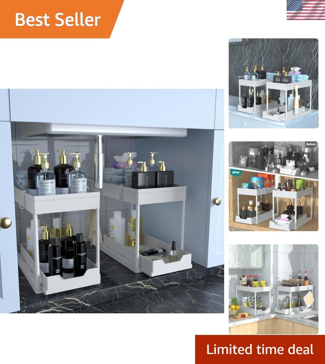 Cabinet, 2 Pack Under Sink Organizer, 2 Tier Sliding Bathroom Kitchen Organiz...