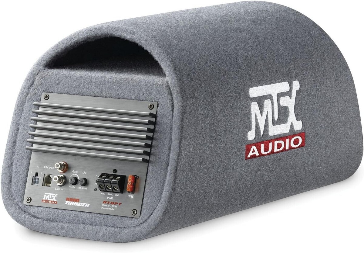 Front View Compact Size Not Performance Don't be fooled by the compact size of the , this amplified and vented bass tube is designed to deliver bass like only can. This low profile unit can be installed in virtually any vehicle without sacrificing space. The 8-Inch subwoofer, integrated amplifier, and vented enclosure bass you have to experience to believe. Key Features: Integrated 120 Watt RMS Amplifier 8-Inch High Output Subwoofer Vented Enclosure Design High and Low Level Inputs for Easy Connection to Any Source Amplifier and Vent View 40 s of Experience This universal amplified enclosure was designed for new enthusiasts looking to experience what adding bass to their music sounds like and for those hard core bass fans who have unfortunately had to grow up and can no longer drive around with three 15-Inch subs in their trunk. The 8-Inch high output woofer used in this unit includes a lightweight and durable polypropylene cone that efficiently moves air for excellent output. The integrated class D amplifier can deliver up to 120 watts RMS power to the subwoofer using either high or low level inputs, so it is easy to connect to any type of radio. The unit also includes an external bass control that can be connected to the amplifier and mounted near the driver allowing for adjustment on the go.