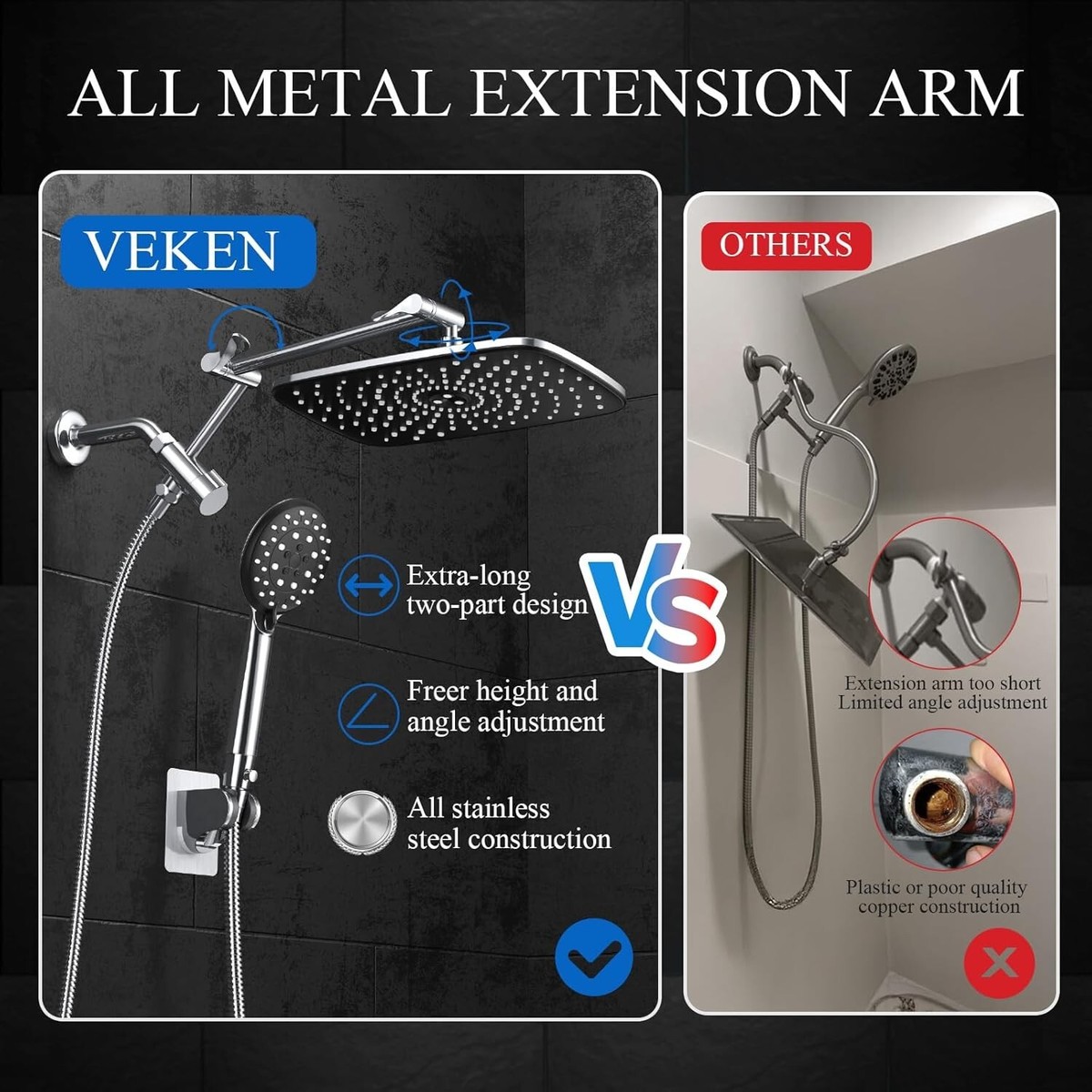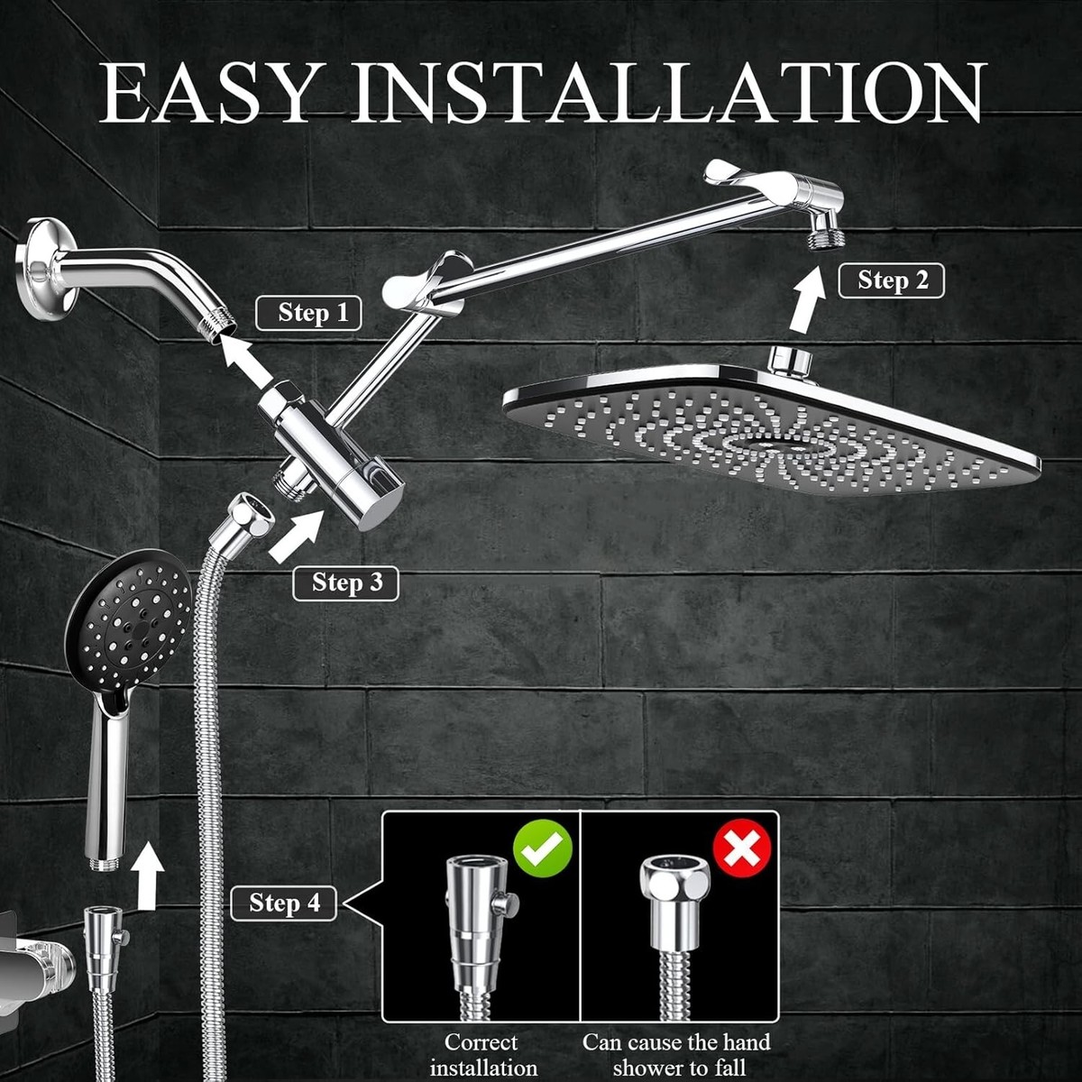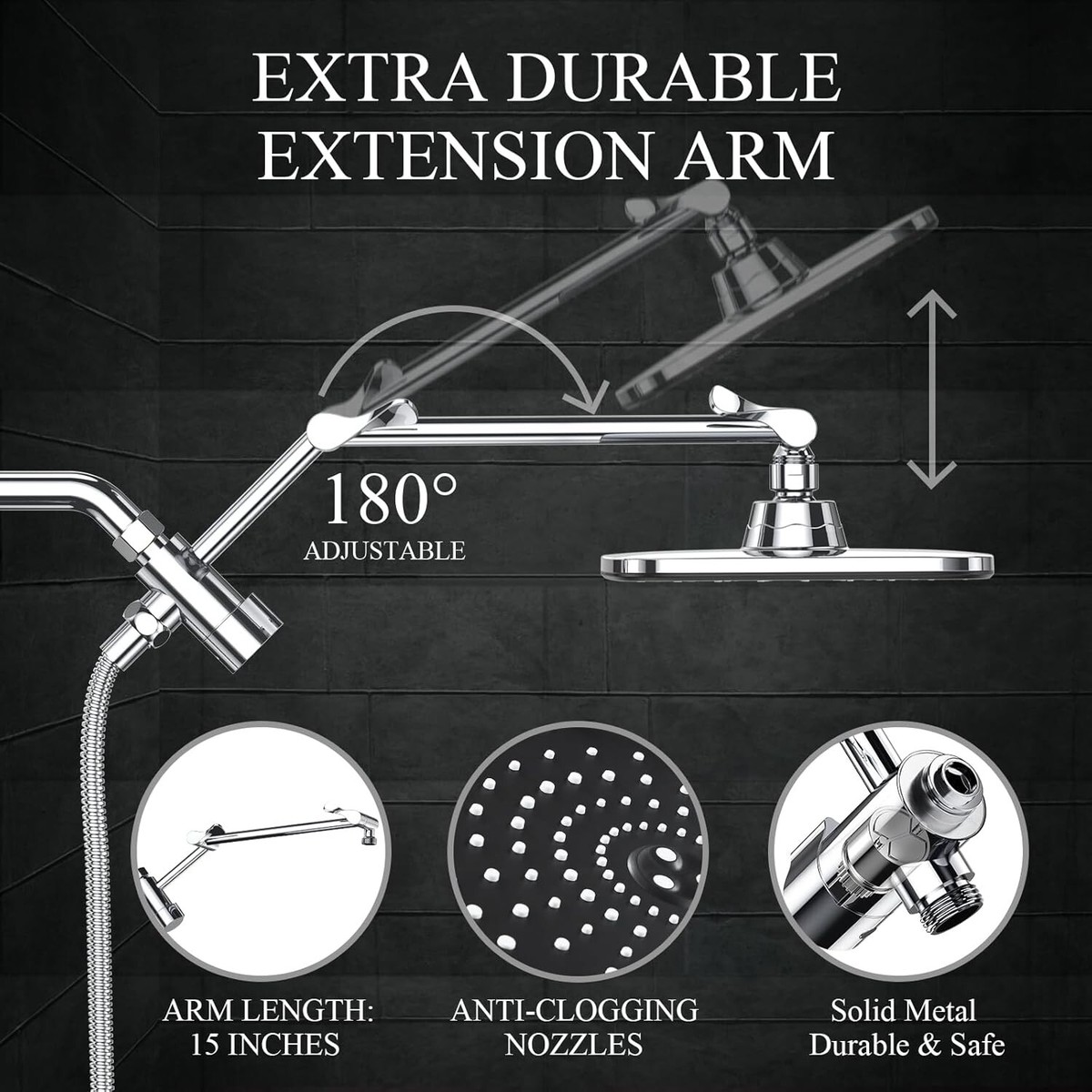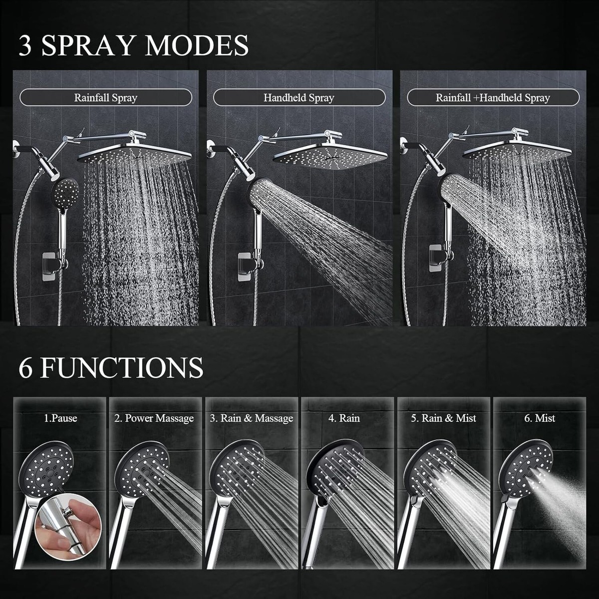 Inch Rain Shower Head Combo with Extension Arm- Wide Showerhead with 6 Handheld Water Spray - Dual Shower with Anti-Clog Nozzles - Chrome