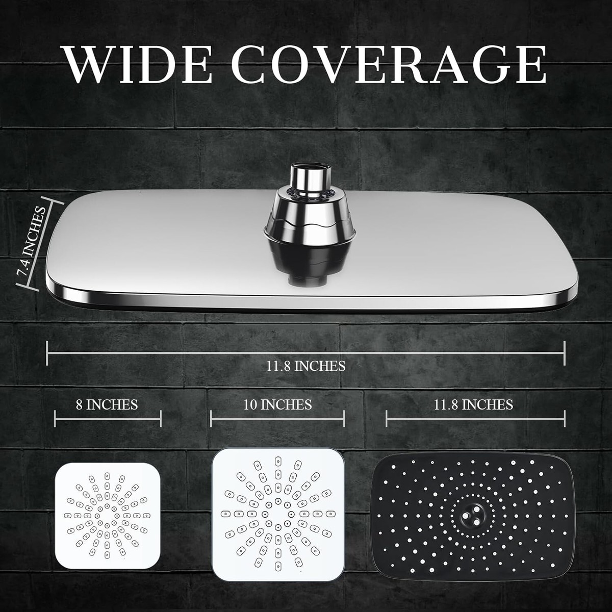 11.8 Inch Rain Shower Head Combo with Extension Arm- Wide Showerhead with 6 H...