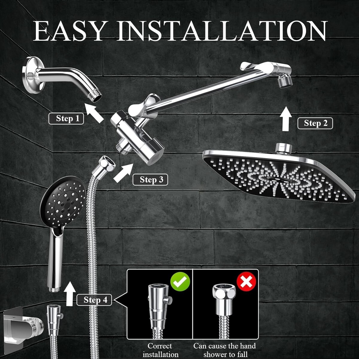 Best of Both Worlds. Enjoy all the perks of a fixed overhead shower without sacrificing the convenience of using a flexible handheld attachment. Rinse and relax from head-to-toe using our combination shower system