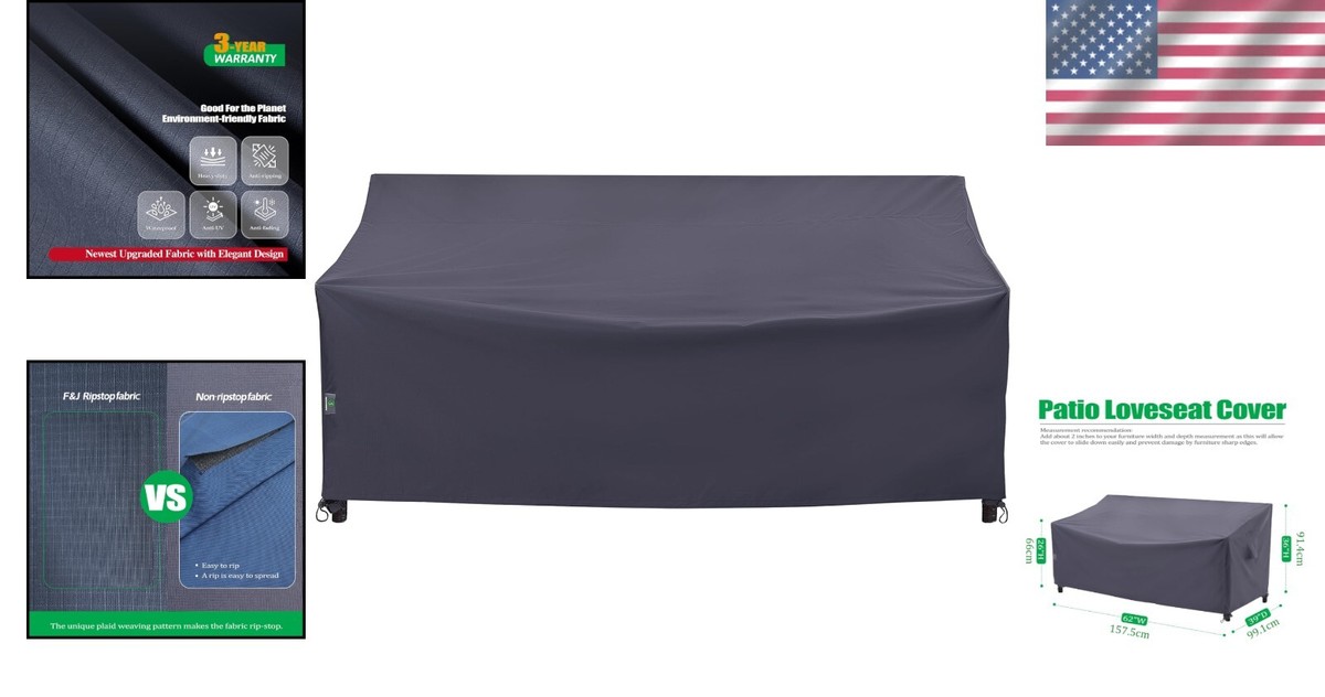 Heavy Duty 2-Seater Loveseat Cover - Weatherproof, Tear Resistant, 62" W x 39" D