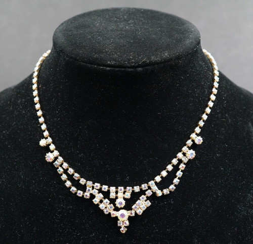 Vintage High End Clear Rhinestone Necklace 14" Long