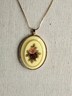 Vintage Signed Lisa Violetto Victorian Crystal/Enamel Rose Pendant Necklace 14"