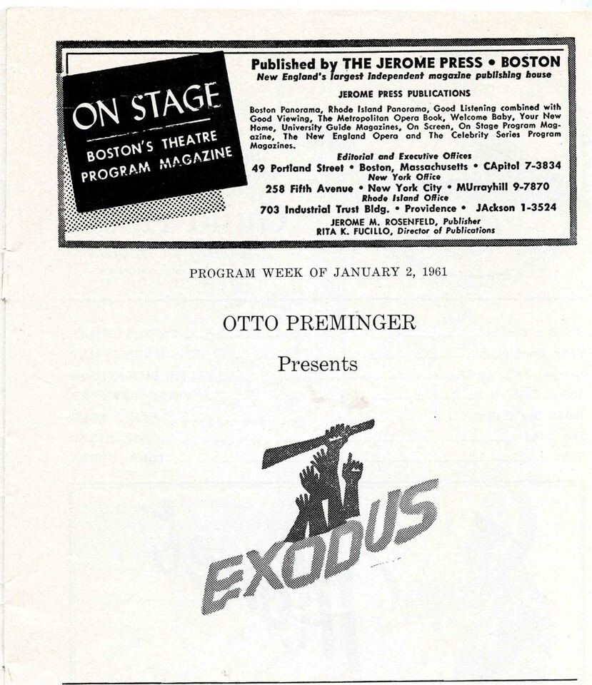 On Stage Program Boston 1961 Exodus Paul and similar items