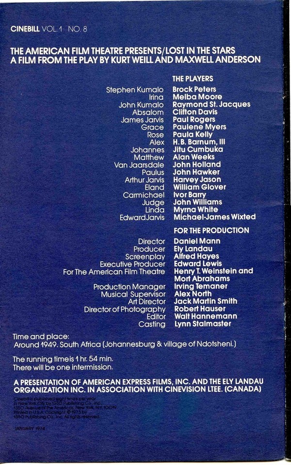American Film Theatre Cinebill Kurt Weill Maxwell Anderson's Lost in the Stars