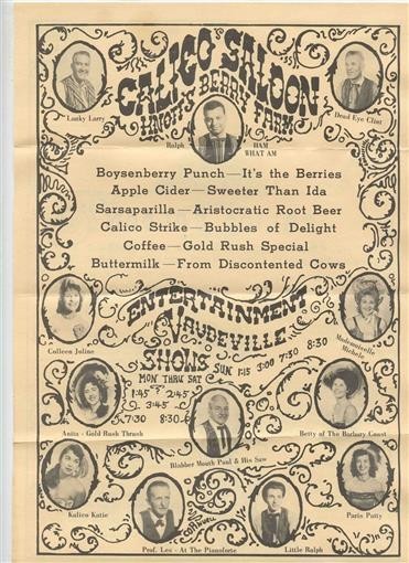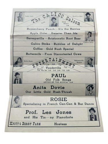 Knott's Berry Farm Calico Saloon Tunes Drink Menu Vaudeville Show Program Mailer