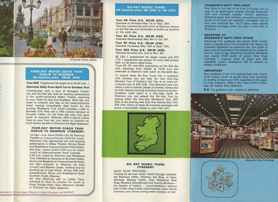 2 Shannon Ireland Airport Tours and Aer Lingus Brochures 1966