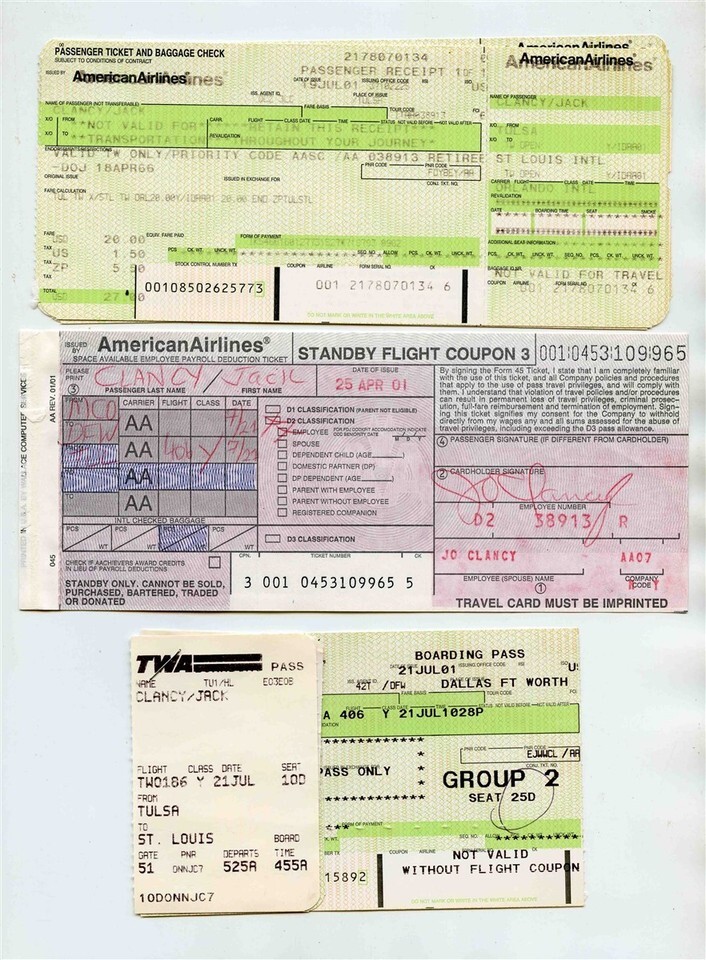TWA Trans World Airlines Ticket Jacket Tickets Boarding Passes 2001