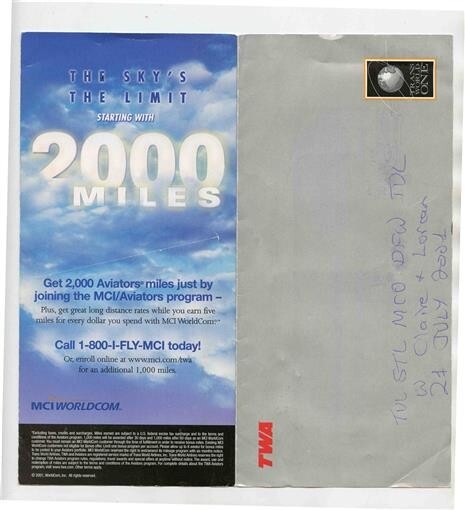 TWA Trans World Airlines Ticket Jacket Tickets & Boarding Passes 2001