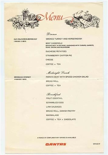 Qantas Airlines Menu San Francisco to and 20 similar items